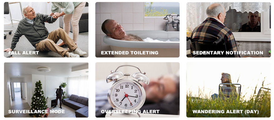 Helping increase safety and reduce running costs for senior living communities and health systems. A smart and contactless monitoring and early warning device. Designed to screen for high-hazardous risks of day to day living for senior citizens. Get alerts for falls, wandering, oversleeping, inactivity, heart/respiratory rate, and more! In case of an incident, an alert is sent to the emergency contacts through phone calls, text messages, or APP notifications. Generate data-based analytic health reports that help in the early diagnosis of diseases.